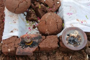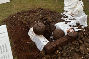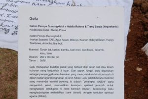 The exhibited work, Gelu, was an installation composed of clay, bamboo, fabric, wood, and stone. Gelu took the form of three solid earth mounds inspired by the gelu (a funerary headrest used in Javanese burial traditions). In its symbolic function, gelu serves as a reminder that life is transient and that all human actions will ultimately return to the earth. The artwork reflects the human life cycle, which begins and ends with the soil, while simultaneously marking the intersection of the material and spiritual worlds. The Gelu installation space evoked a ritualistic atmosphere, integrating visual elements, sound, and earth as a symbol of encounter. A musical collaboration with Swara Prana intensified the vibrant and dynamic spatial experience. In the context of this exhibition, Gelu did not merely exist as a visual object, but also functioned as a space for contemplation on life cycles, resilience, and ecological consciousness.
