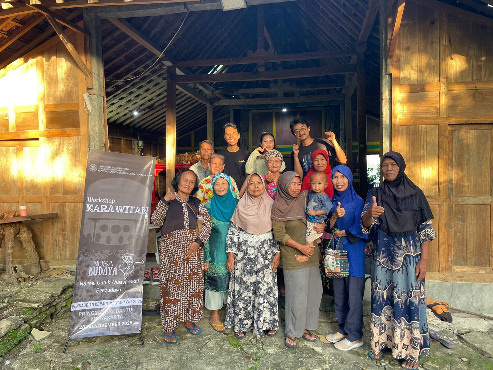 Program Studi Pengkajian Seni Pertunjukan dan Seni Rupa, Sekolah Pascasarjana, Universitas Gadjah Mada, menyelenggarakan lokakarya Karawitan (gamelan Jawa) untuk lansia di Desa Pringgading, Bantul, pada tanggal 28–29 November 2025. Kegiatan yang berlangsung selama tiga hari ini merupakan bagian dari program keterlibatan masyarakat “Nusa Budaya: Narasi untuk Masyarakat Berbudaya”, sebuah inisiatif yang menempatkan praktik seni sebagai media untuk memperkuat hubungan sosial, mewariskan nilai-nilai budaya, dan meningkatkan kualitas hidup di masyarakat pedesaan. Melalui program ini, mahasiswa tidak hanya meneliti relevansi sosial dari kajian karawitan, tetapi juga mendampingi para lansia sebagai praktisi budaya yang aktif dan produktif.