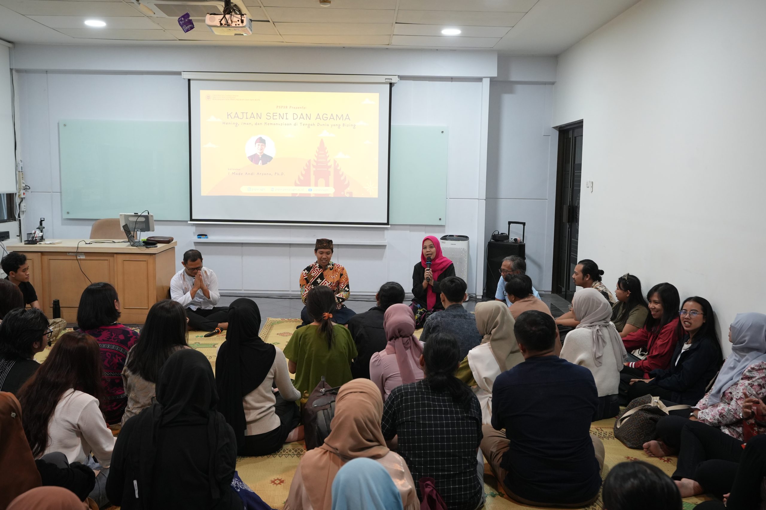 Acara dipandu oleh I Made Christian Wiranata Rediana dan dibuka dengan sambutan Ketua Program Studi Magister PSPSR, Dr. Rr. Paramitha Dyah Fitriasari, S. Ant., M.Hum. Pada kesempatan tersebut, I Made Andi Arsana, Ph.D., (Bli Andi), hadir sebagai narasumber, mengangkat tema “Dharma Ning Nusantara: Hening, Iman, dan Kemanusiaan di Tengah Dunia yang Bising”, dan berbagi pengalaman mengenai perjumpaannya dengan rekan-rekan dari latar belakang agama yang berbeda. Ia mengingatkan pentingnya sikap saling menghormati di tengah keberagaman budaya dan etnis yang menjadi kekayaan Indonesia. Dalam pemaparannya, Ia juga menekankan kontribusi agama dalam kehidupan, yakni bagaimana nilai-nilai spiritual dapat bergerak dari diri untuk dunia, sekaligus dari dunia kembali membentuk diri.